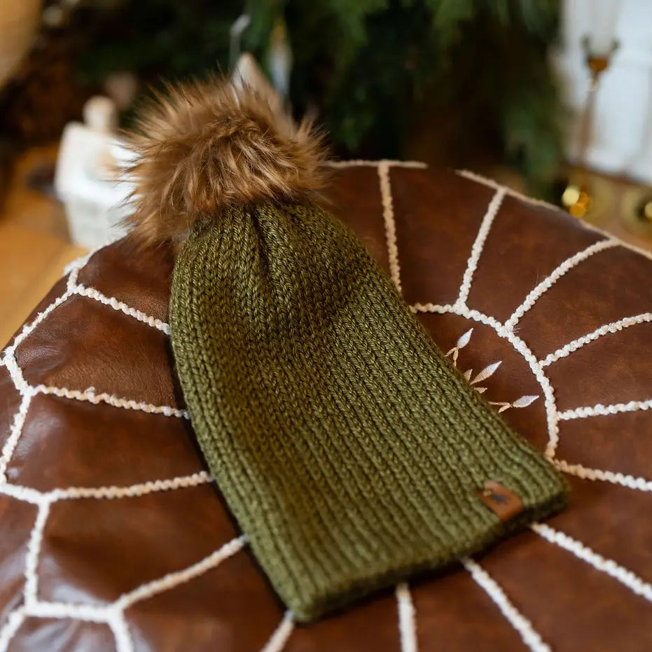 Knit Beanie Toque with Fur Pom Pom