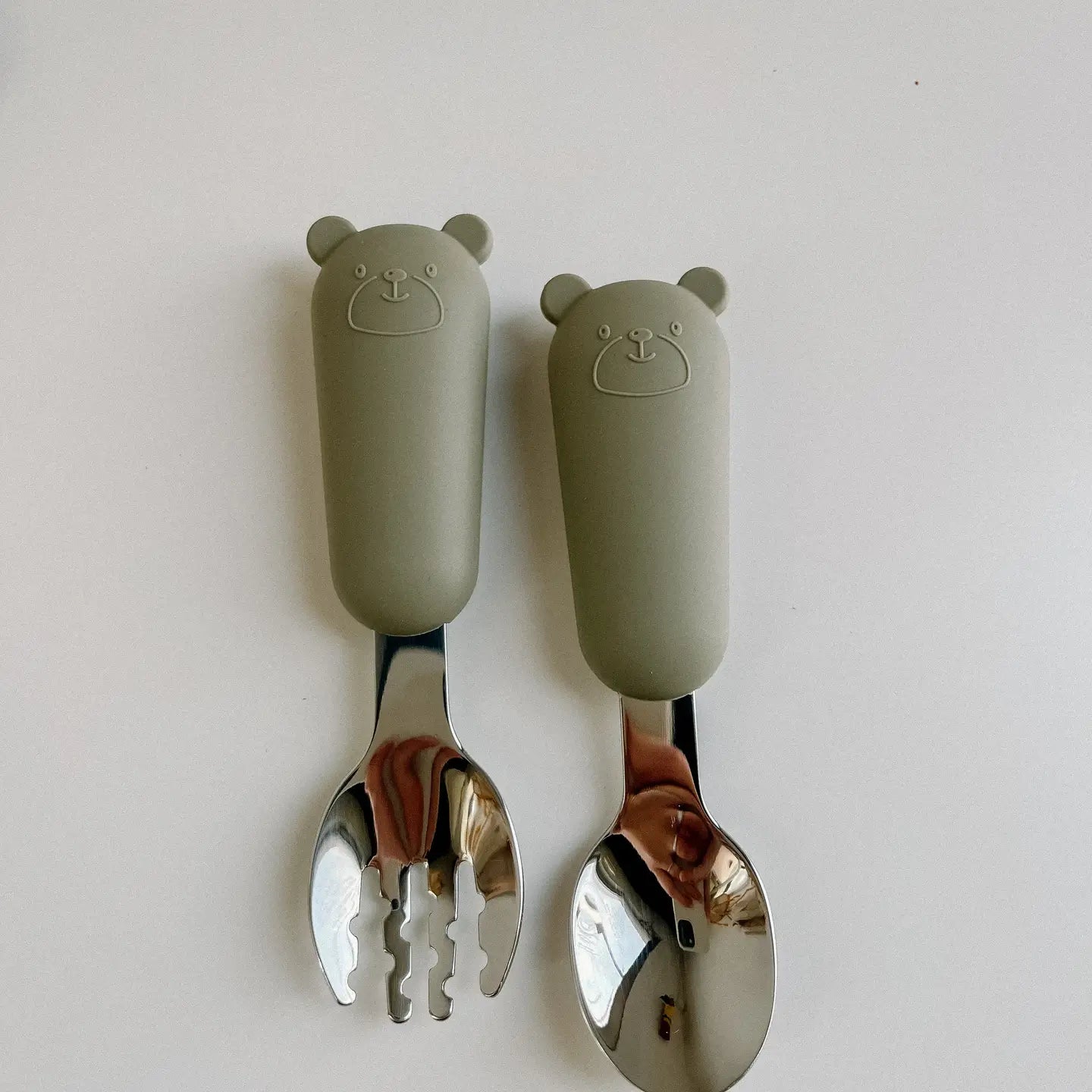 Peaks & Valleys Cutlery Set is the perfect addition to your little ones tableware collection! Made from food grade silicone and stainless steel that is dishwasher safe, our dinnerware set is easy to clean, durable, and long-lasting.